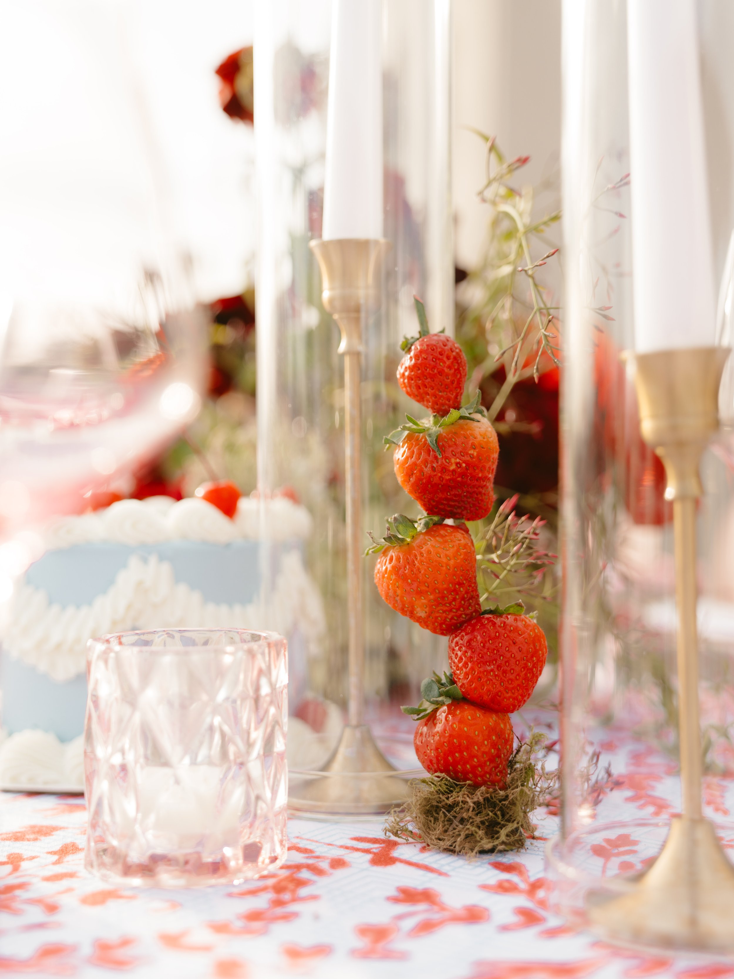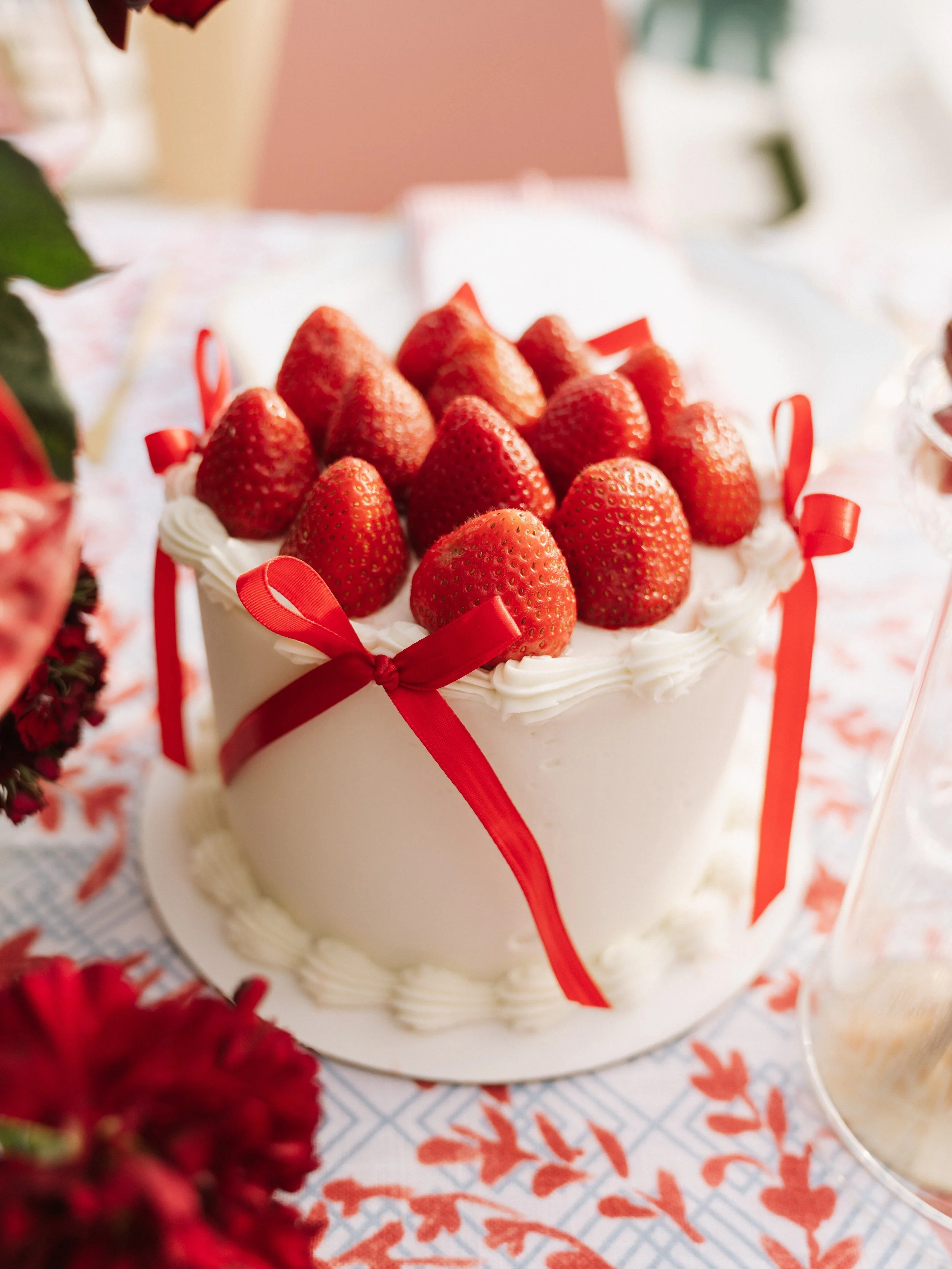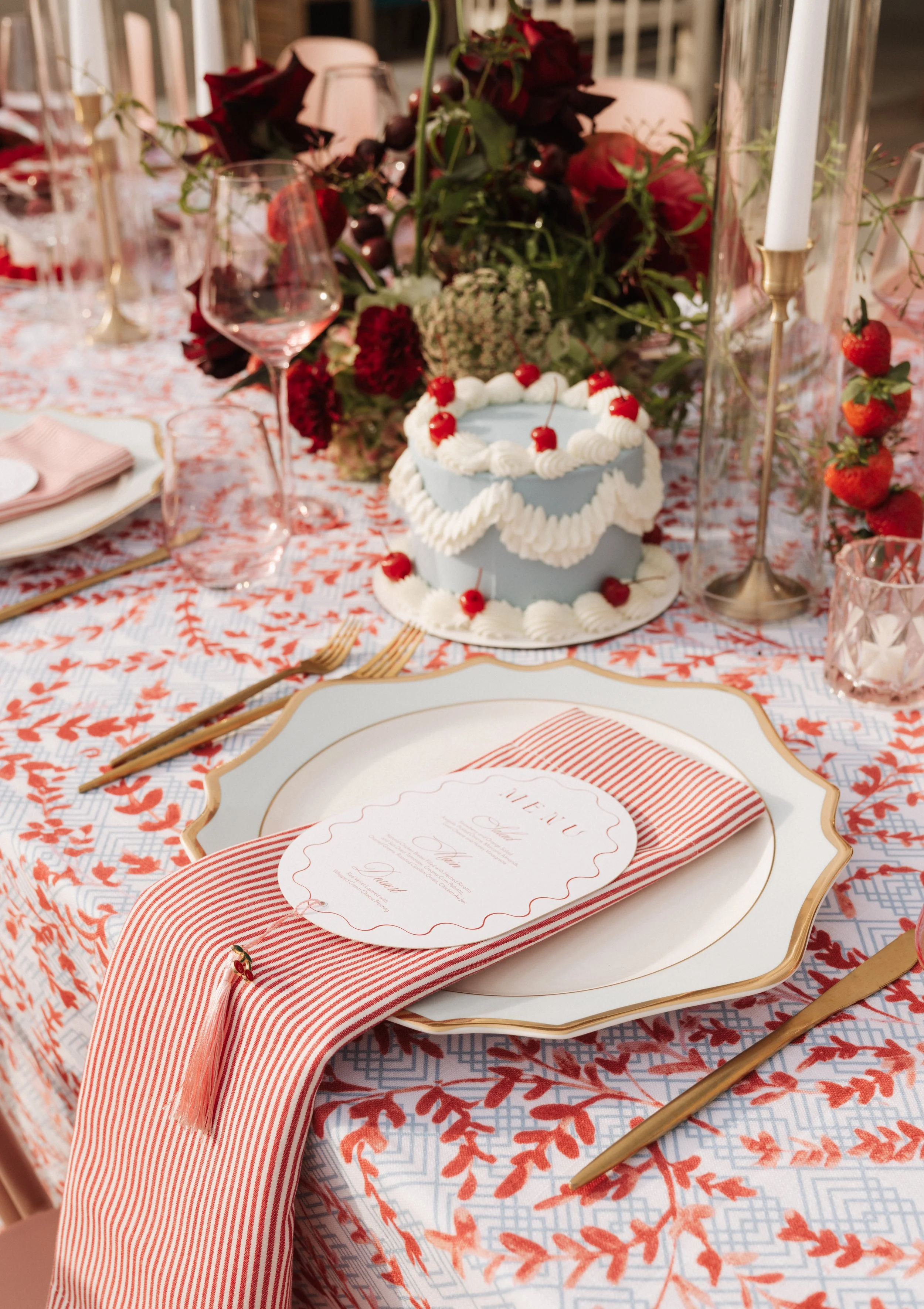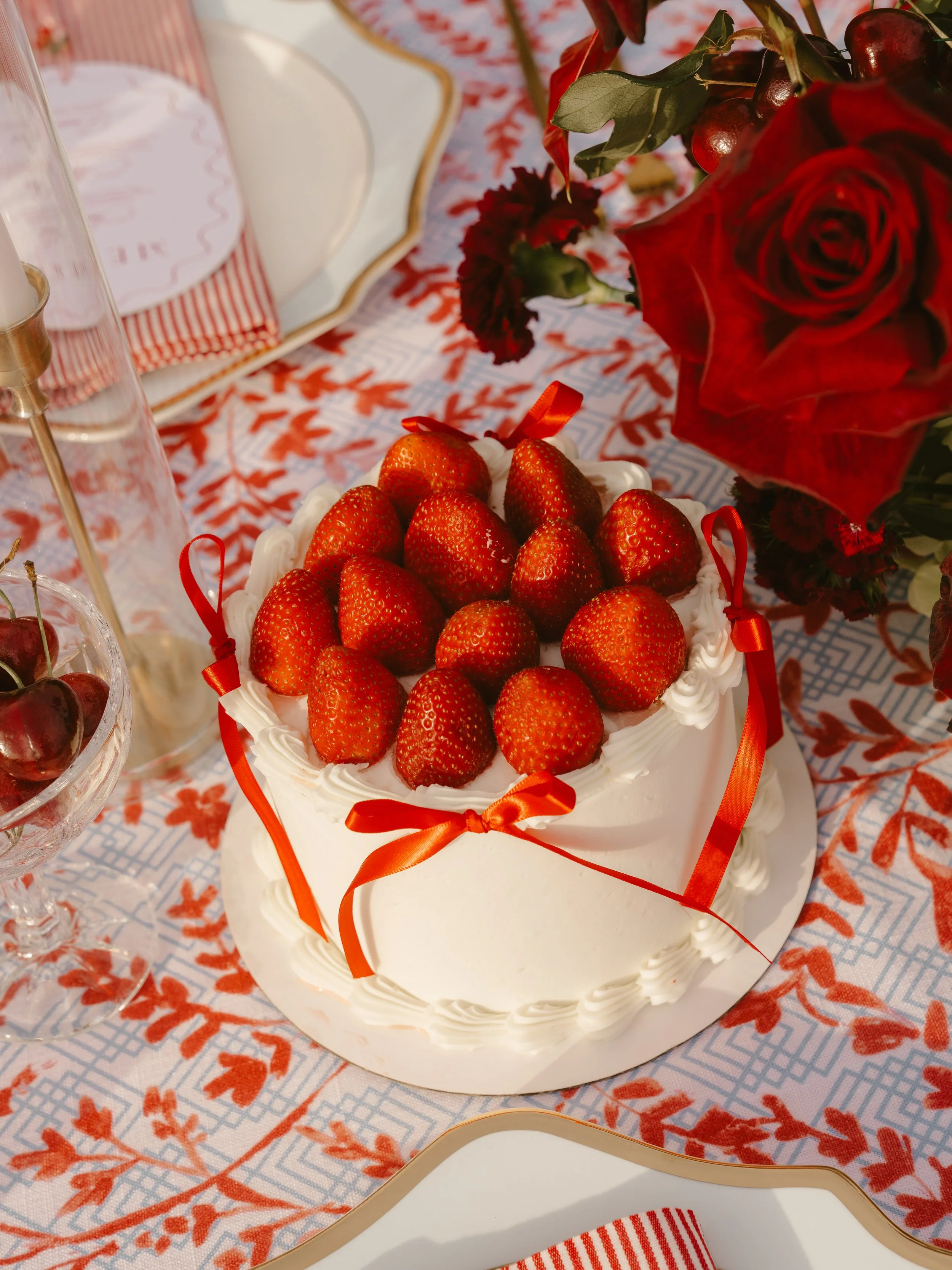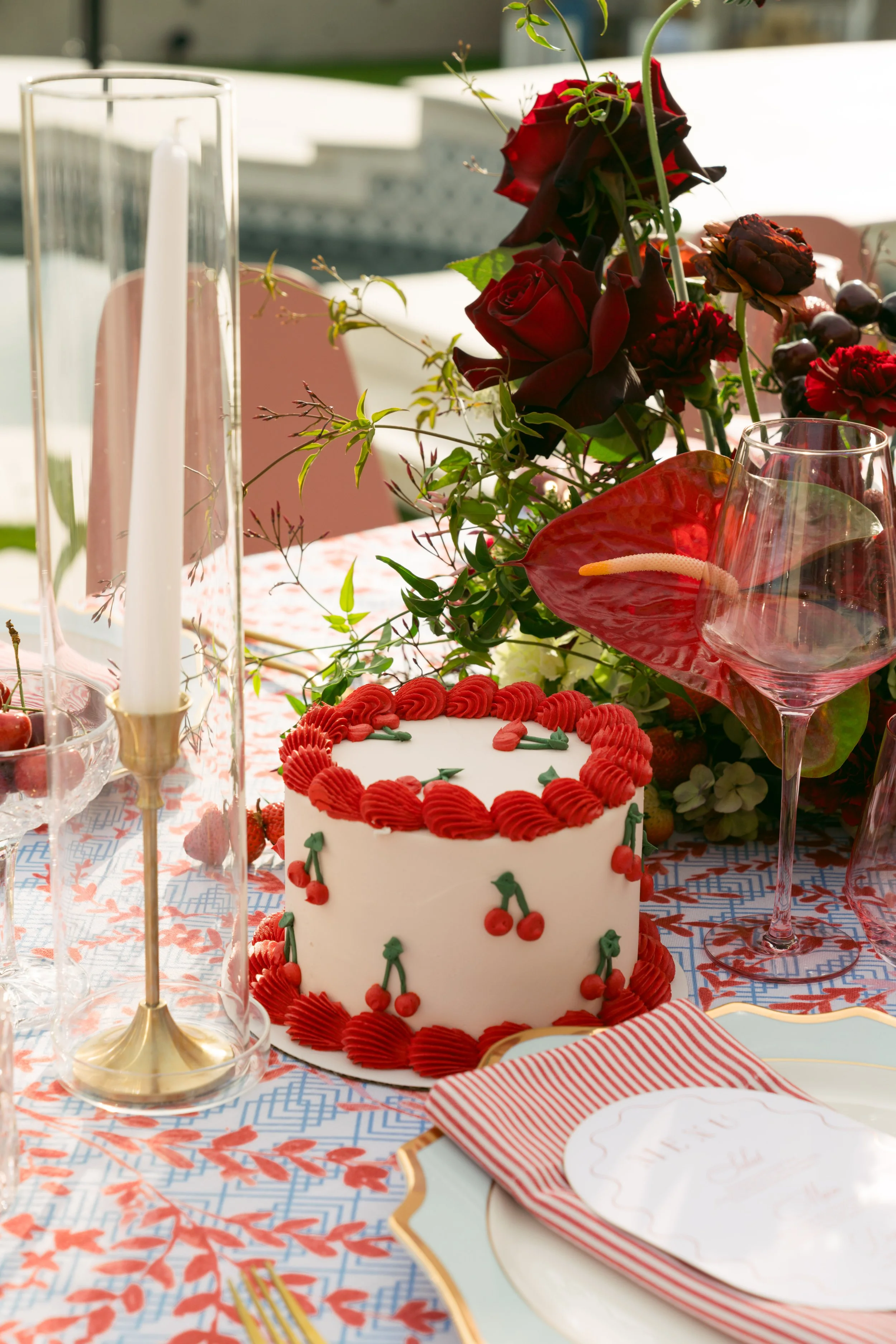 Featuring playful linens by BBJ La Tavola, elegant rentals from Confetti Studio, and whimsical cakes by CakesbyKenna, this design brings together sweet details and bold romance. Lush cherry and strawberry florals by The Wildflower paired with custom signage by Arch and Arrow create a modern, feminine celebration that’s perfect for brunches, showers, or intimate gatherings.