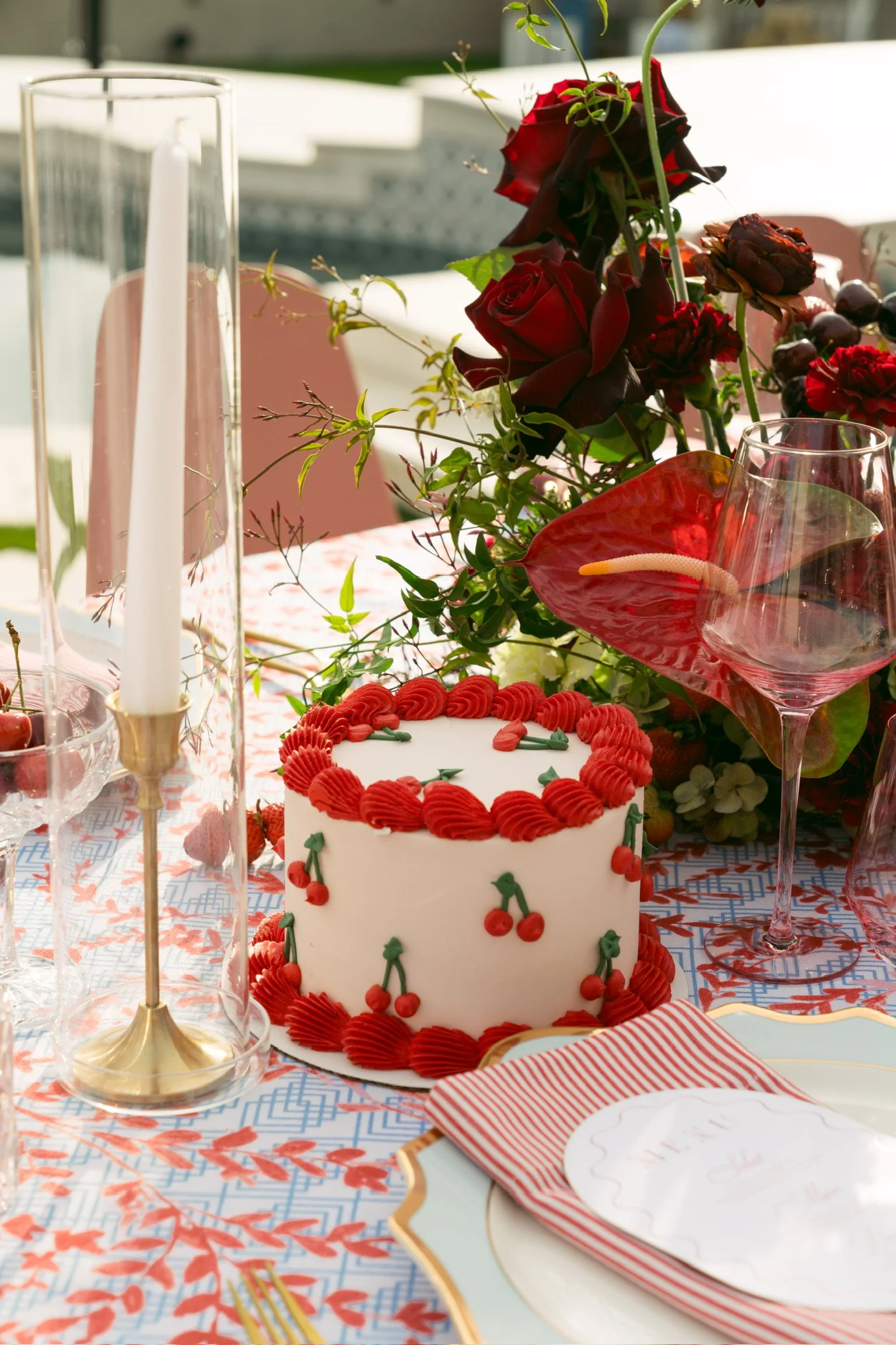 Celebrate Galentine’s Day in style with this chic cherry-inspired tablescape!